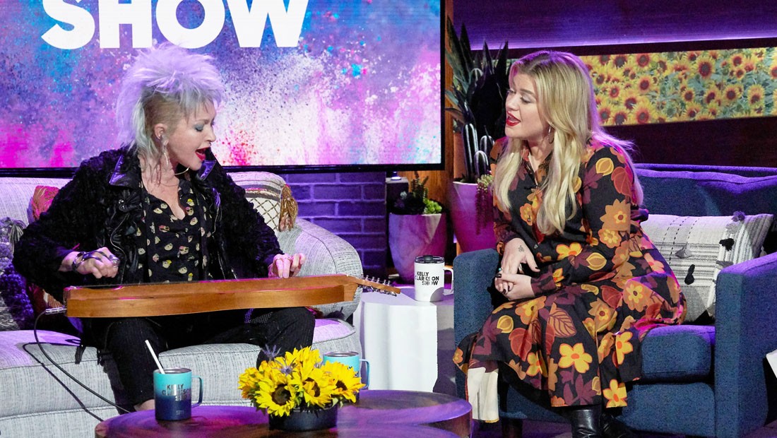 Armed with only her voice and her dulcimer, Cyndi Lauper appeared on Kelly Clarkson's new daytime talk show to perform her song 'True Colours'.