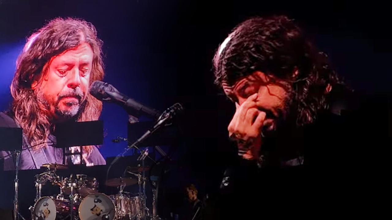Following Freese's introduction, Grohl starts to get emotional as he begins to strum on an acoustic guitar.