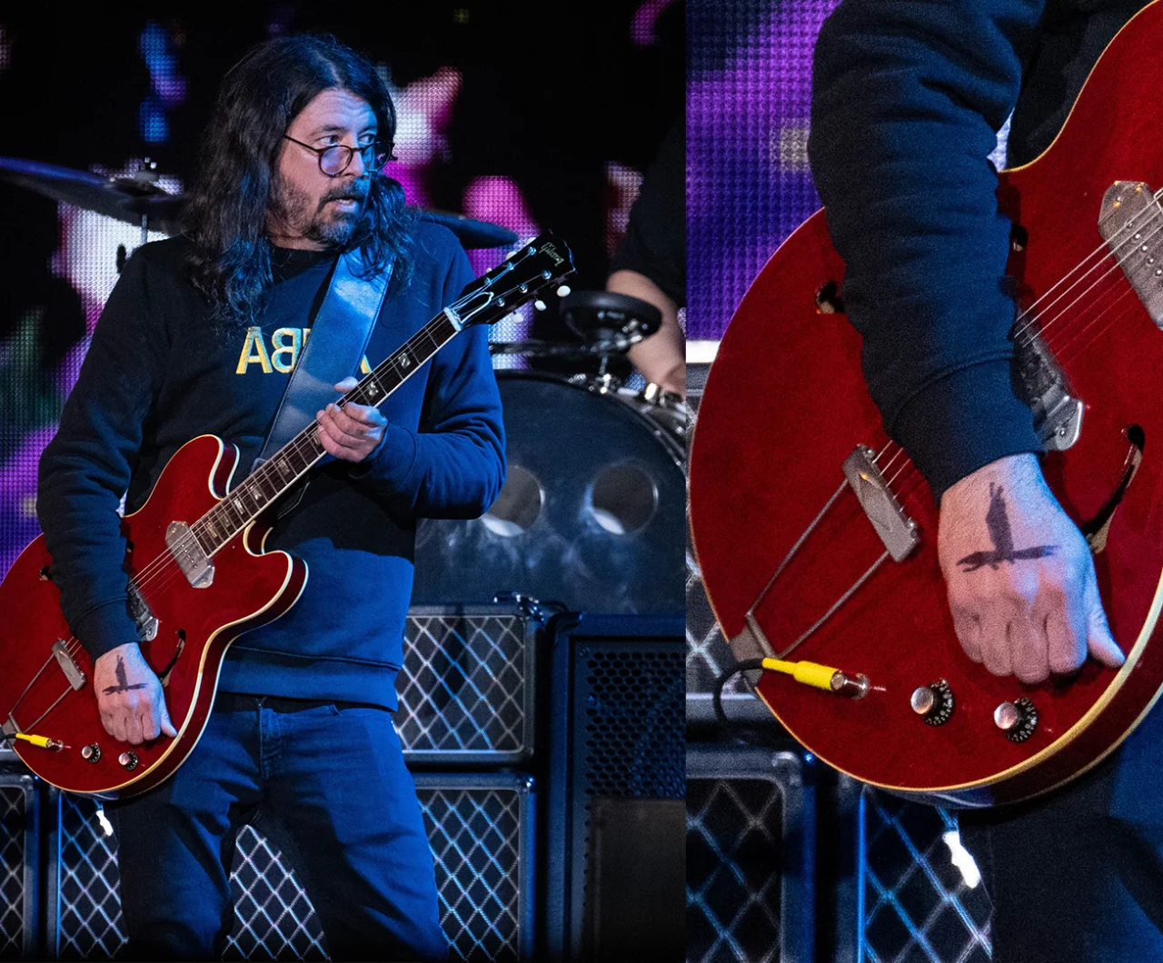 Dave Grohl has what seems to be a tattoo, or at least a drawing, of the letter 'T' on his right hand as a tribute to his late, great bandmate Taylor Hawkins. Grohl made his first public performance since Hawkins' death as a surprise guest during Paul McCartney's set at Glastonbury. McCartney introduced Grohl by saying: "My friend. Your hero. From the West coast of America. Dave Grohl!"