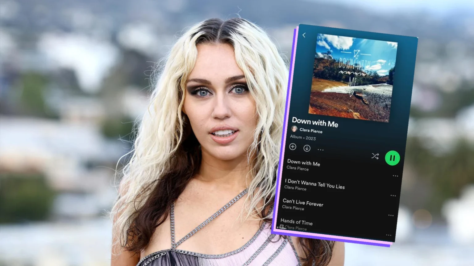 A bunch of fans recently came across an album on music-streaming platforms like Spotify and Apple Music, from an artist named Clara Pierce. The album, called 'Down With Me,' has twelve songs on it, and all of the songs undoubtedly sound exactly like Miley Cyrus.