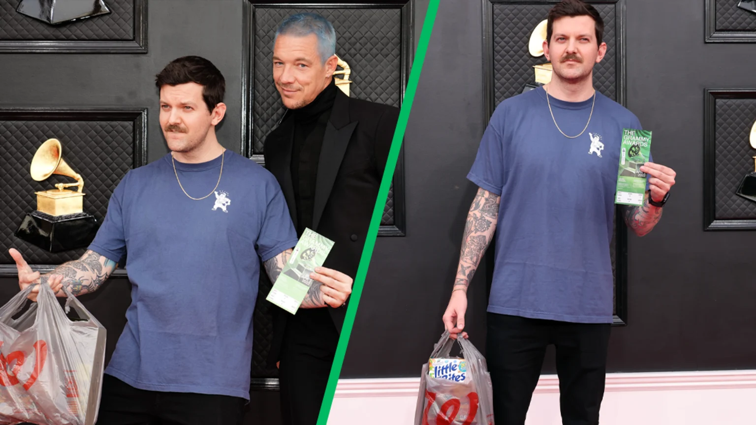 Dillon Francis and his plastic bag are doing the least on the Grammys red carpet