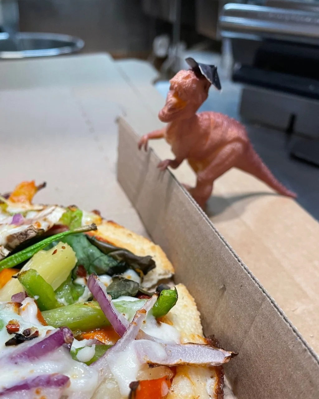 "Bitey not only distributed all of the pizza ingredients perfectly across my supreme pizza, he also stacked my firewood and cleaned my gutters before delivering a rousing motivational speech as guest speaker at a support group. Thanks again Bitey!" shared yet another person who Bitey has gone above and beyond for. During these tough times, it's amazing to see a stalwart examplar of what it means to be a New Zealander - Bitey is the Kiwi spirit personified (dino-ified?).