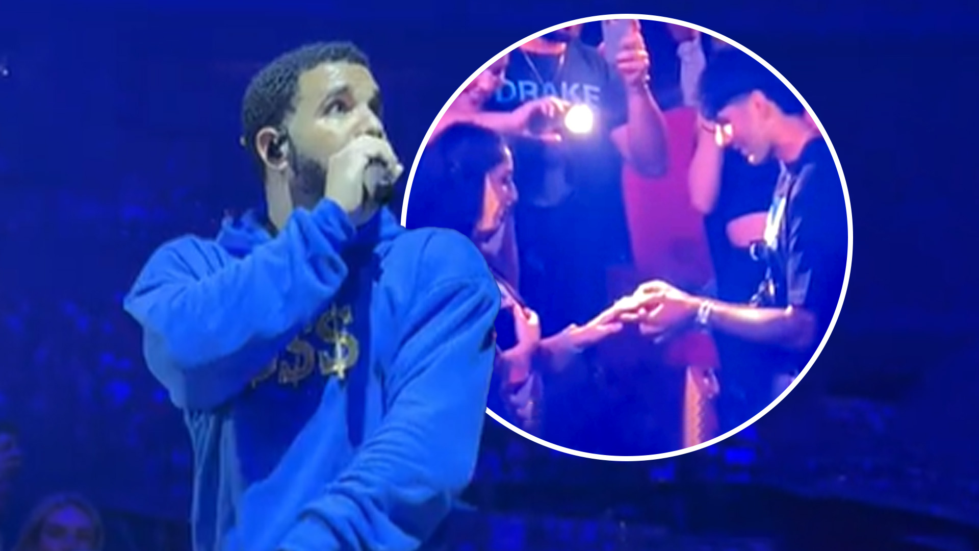 During the first night of his Sydney shows, the Canadian rapper had a proposal shown on the big screens, making sure the entire arena saw a young man get down on one knee for his girlfriend.