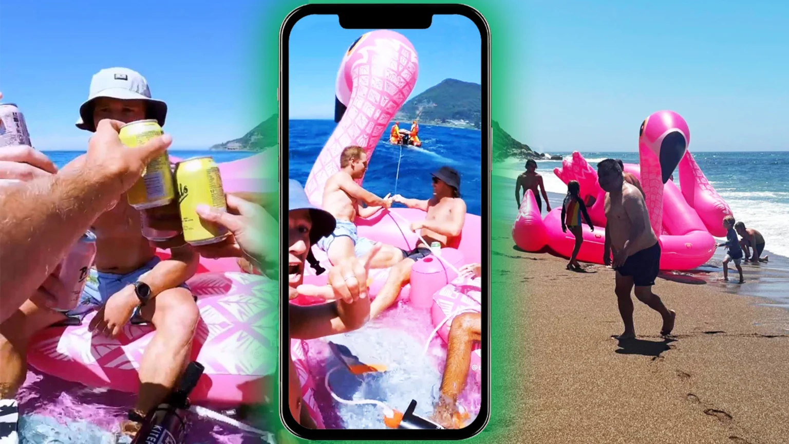 This Australia Day, five lads took their giant inflatable pink bird to Stanwell Park, just south of Sydney. Equipped with Pals, cheese and biscuits, the aforementioned blow-up flamingo and a mission to accomplish, the fellas hit the beach and got busy.