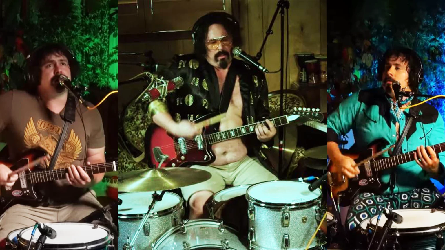 There's a bloke out there rocking an incredible moustache that plays the guitar, the drums, and sings all at the same time and it is awesome.