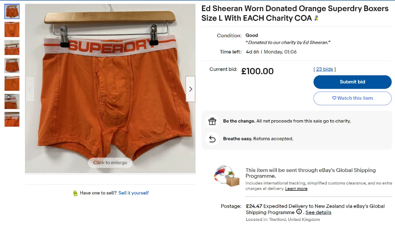 EACH's Director of Retail, Ian Nicolson, remarked said the charity had already received intense interest in Ed's boxers and other items.