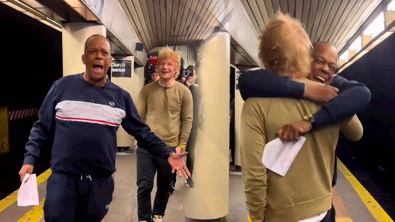 The singer was shooting a video of him singing Ed Sheeran's latest release 'Eyes Closed' on the subway station platform when the one and only Ed Sheeran surprised him.
