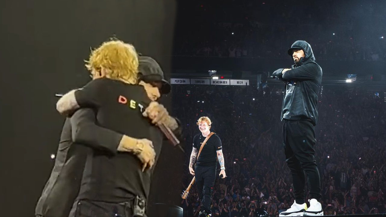 Right after few lines of kicking off the cover, hometown artist Eminem walked on to the stage in his black hoodie and cap, joining Ed and surprising thousands of fans who were not expecting to see this happen at all.