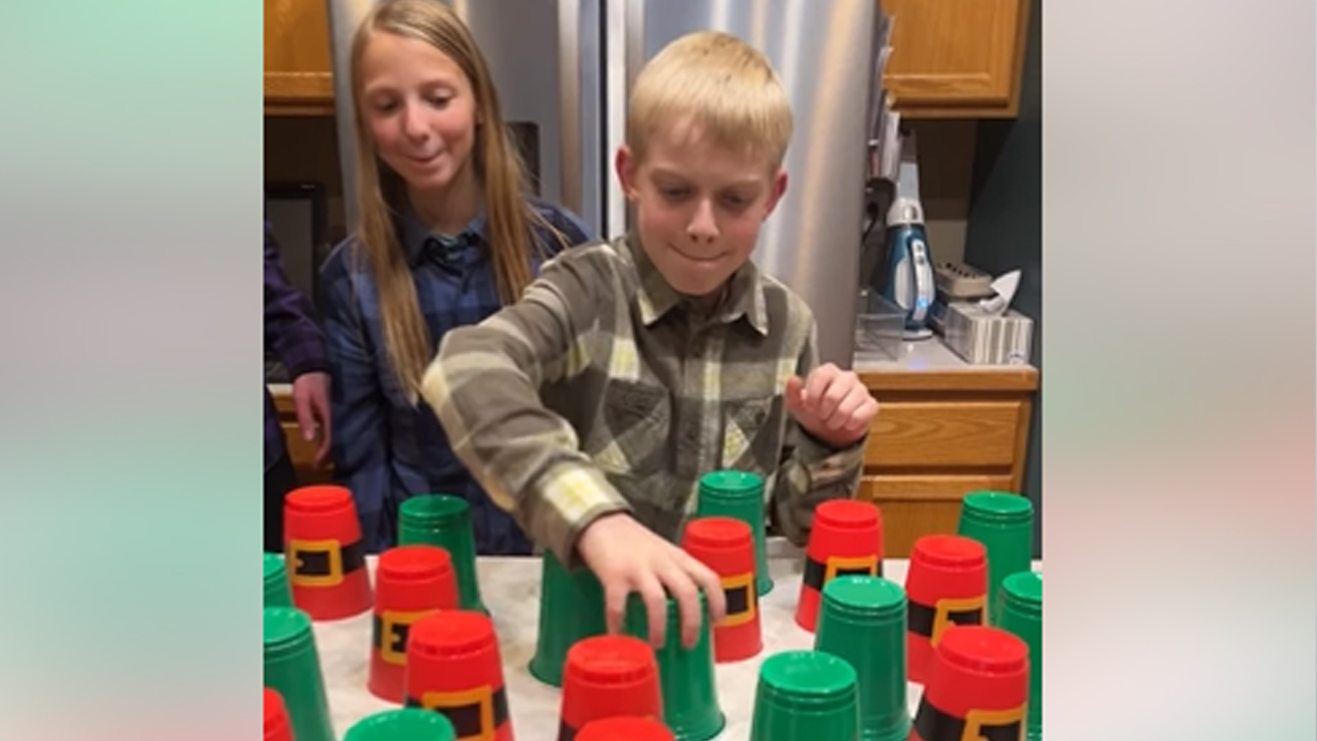 A family shared a video of their 'Christmas Cup Game' on Facebook and it's an exciting game for any age - perfect to play with your family and friends!