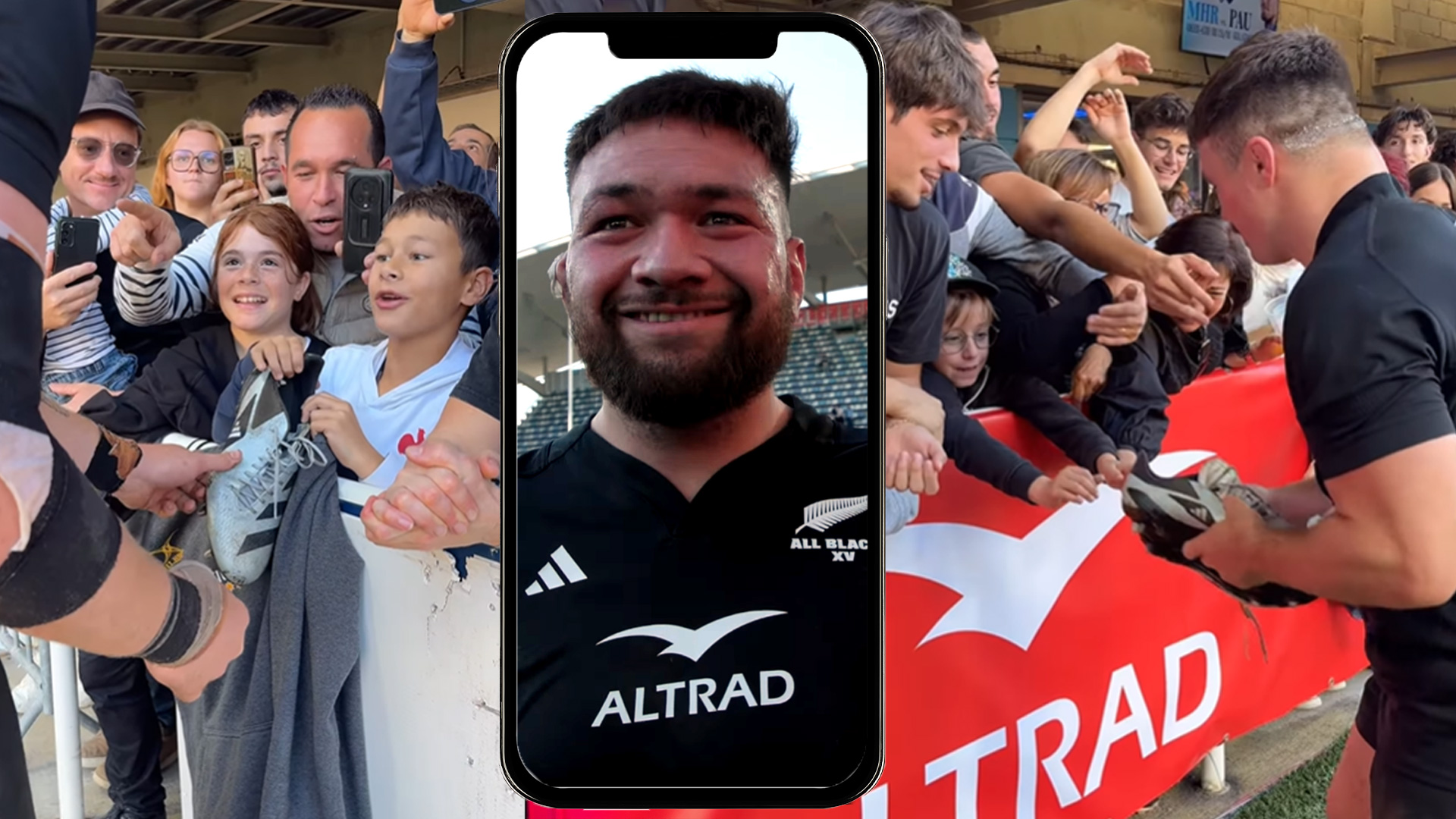 In an Instagram reel posted to the @allblacks teams page after the game, players Fabian Holland and Kurt Eklund were captured giving their boots out to some of the youngest fans in the crowd.