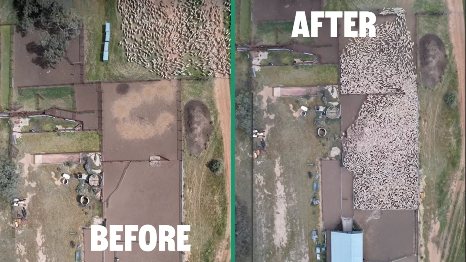 Farmer captures satisfying drone video herding thousands of sheep into pen