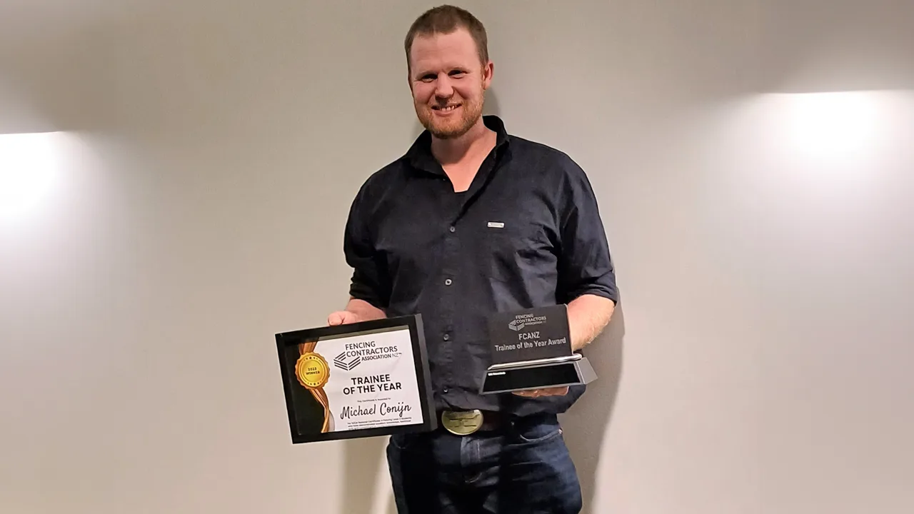 The Trainee of the Year award shone the spotlight on Michael Conijn from Custom Fencing in Dunedin. His exemplary skills in fence line installation, coupled with his innate leadership abilities, set him apart.