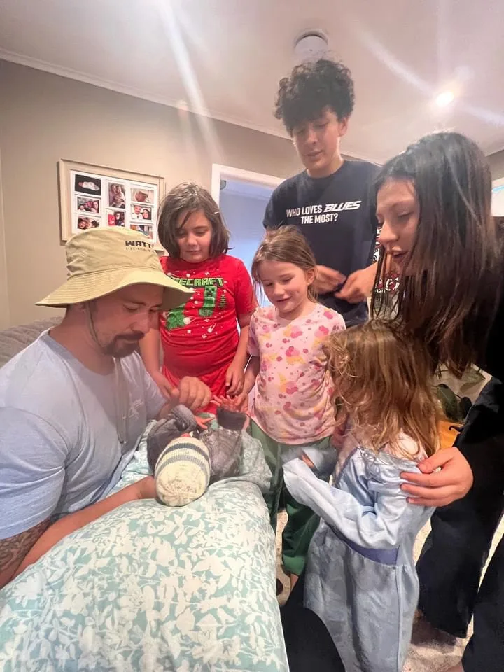 "All the kids are hovering over him, they all want to help change nappies and feed and carry him, we will see how long that lasts for".