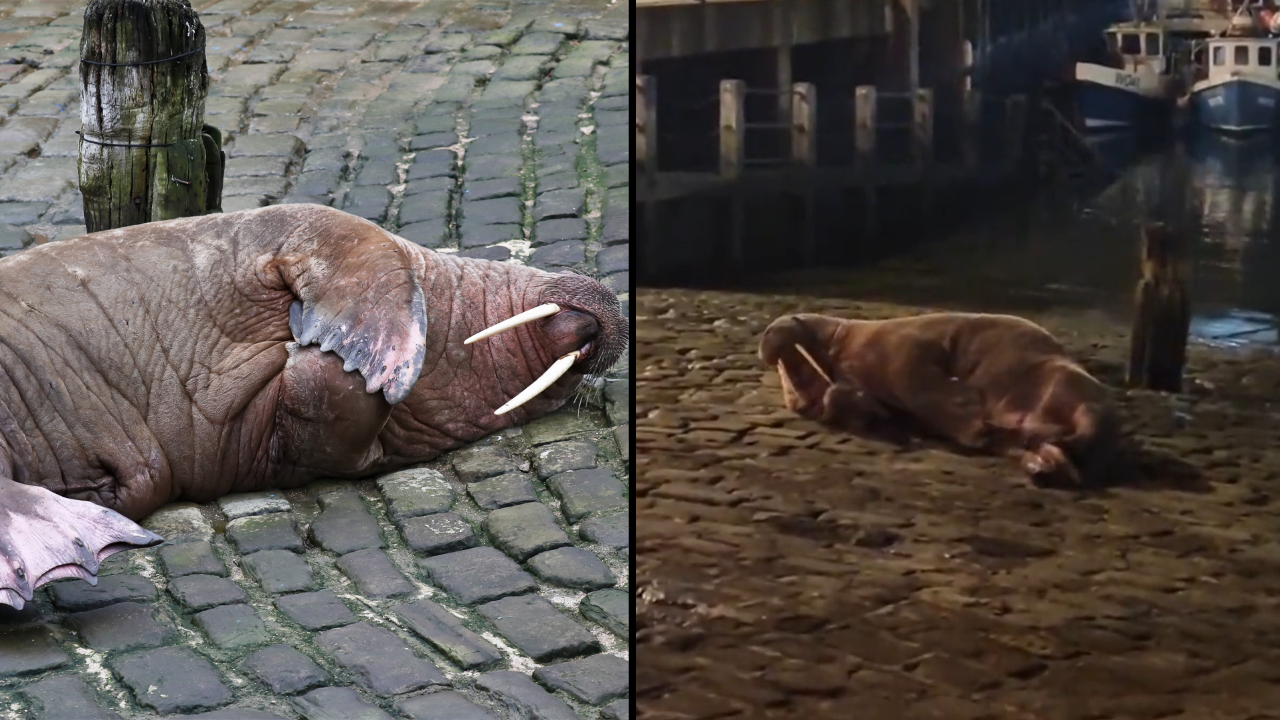 According to British Divers Marine Life Rescue, the walrus, nicknamed "Thor", showed up at a boat ramp at Scarborough Harbour around 11.30pm on December 30th. It was hoped Thor would leave the harbour before the fireworks display the following evening, but as news spread that there was a walrus in town, thousands of people came to see him.