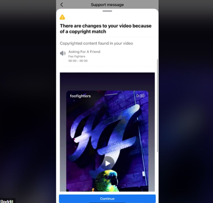 One fan took to Reddit, showing that when they tried to share the reel to their own Facebook account, it came up with a copyright warning, muting the song used in the original post, which was labeled ‘Asking For A Friend’ by Foo Fighters.