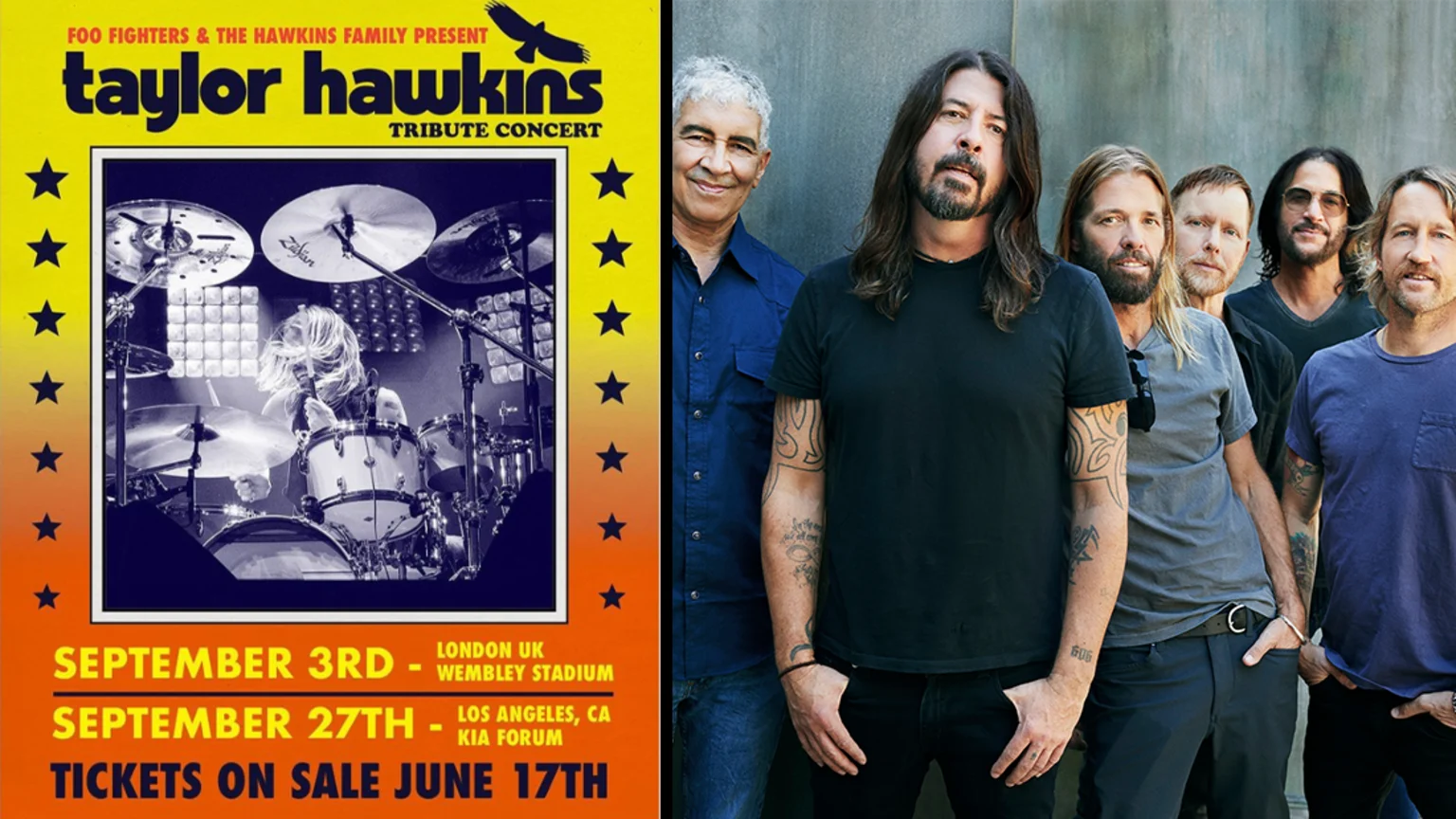 "Dave Grohl, Nate Mendel, Chris Shiflett, Pat Smear and Rami Jaffee will come together with the Hawkins family to celebrate the life, music and love of their husband, father, brother and bandmate with The Taylor Hawkins Tribute Concerts."