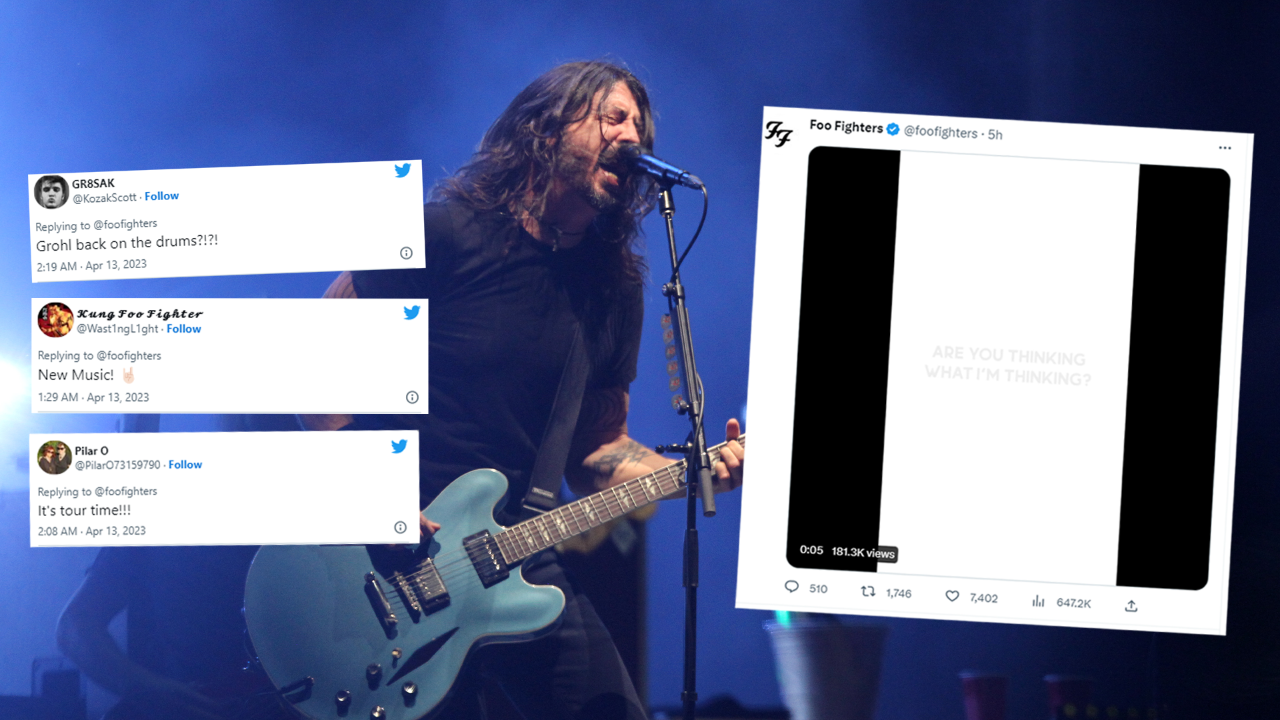 This morning (13 April), the official Foo Fighters accounts posted a 13-second-clip with a white background and faint grey text that reads 'Are you thinking what I'm thinking?', along with a snippet of audio playing underneath.