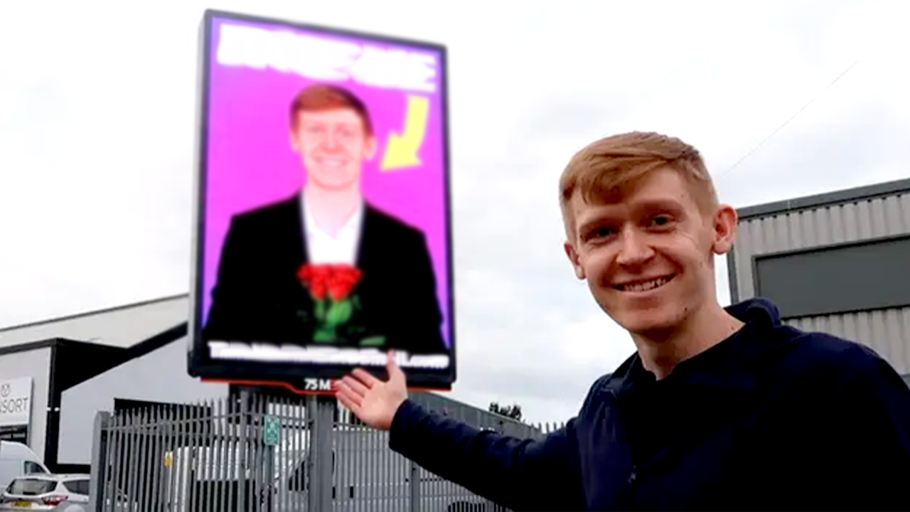 A 23-year-old bloke has shared the bold way he's tried to land himself his very first girlfriend, involving a billboard and a heck of a lot of confidence.