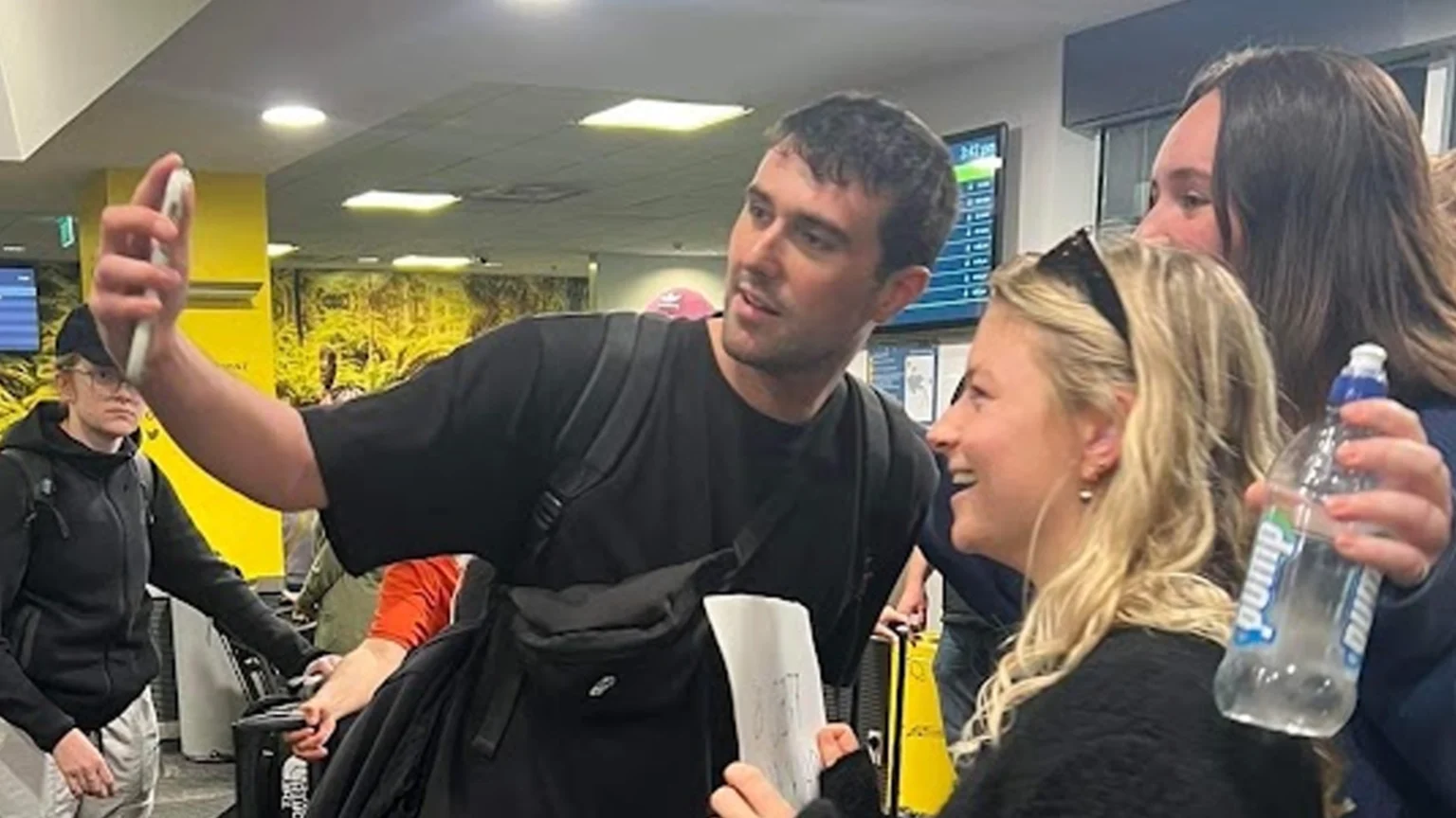 Photos have emerged of the British DJ in Wellington Airport taking some pics with Kiwi fans.