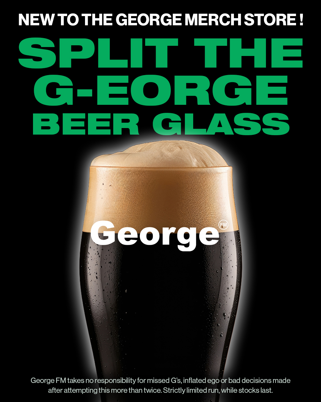 The George FM Split the G-eorge Glass drops exclusively in the merch store today. Strictly limited run — mainly because the George crew have already claimed most of them.