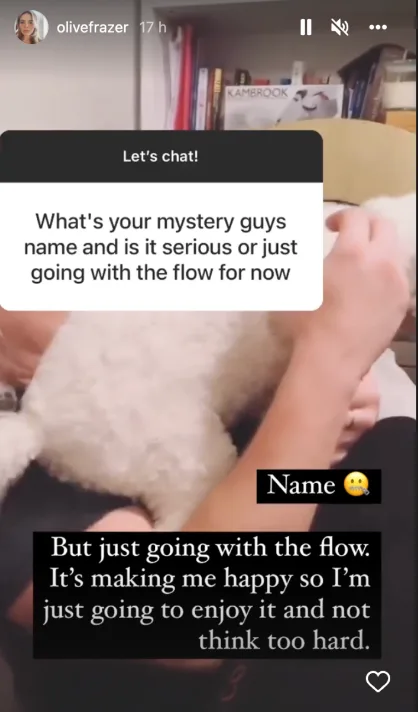 She responded by sharing a video to her Insta story, conveniently covering her mystery man's face with the answer which read: "Name" before a zipped-lips emoji.