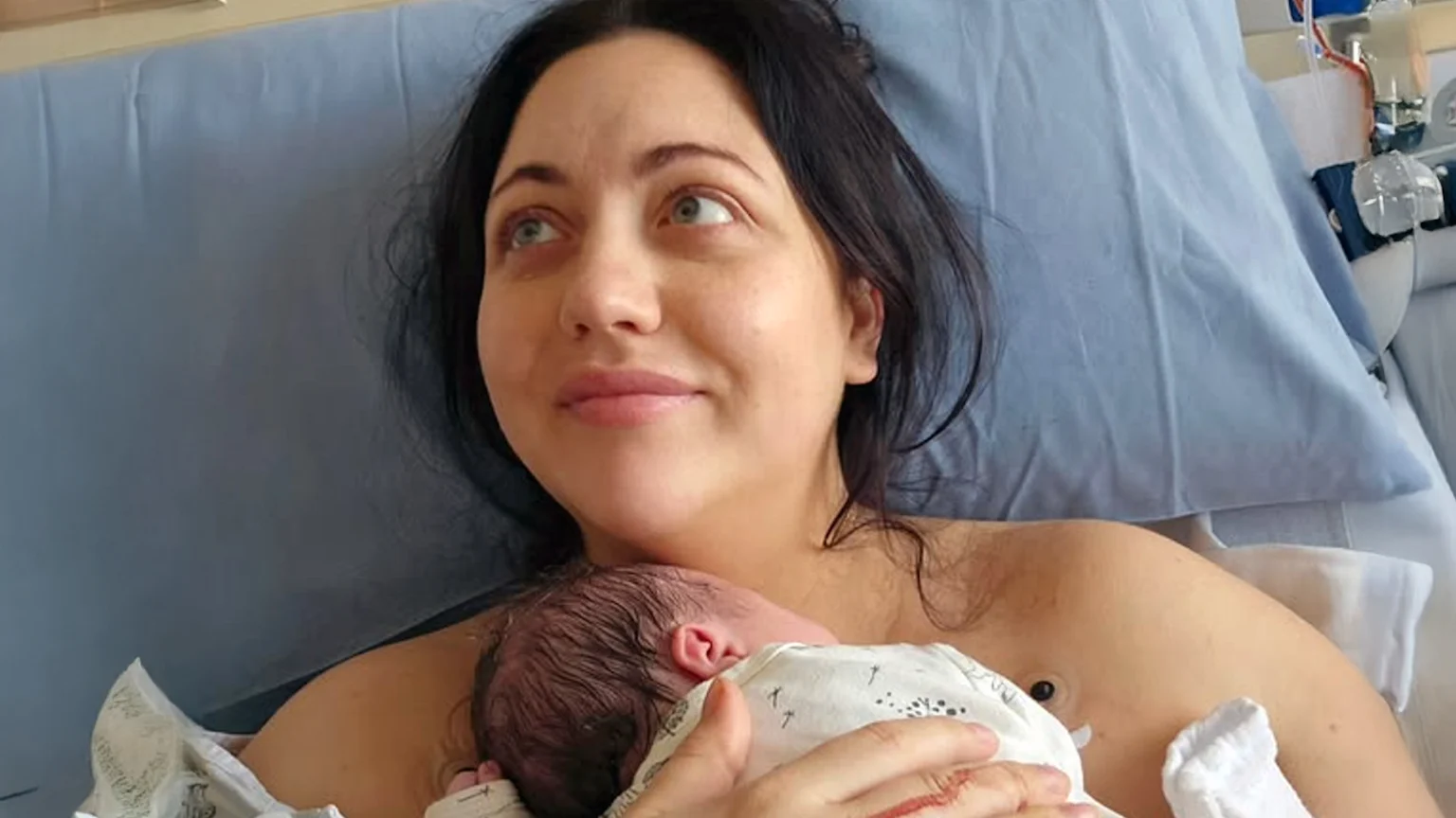 Introducing Miller Lake Mansell to the world this morning, Guy shared some of the first images of their newborn daughter being held by Meg.