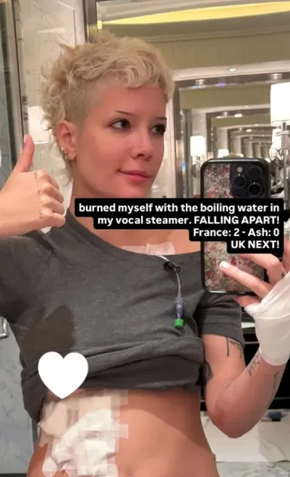 Halsey has revealed that she is covered in bandages after suffering painful burns.