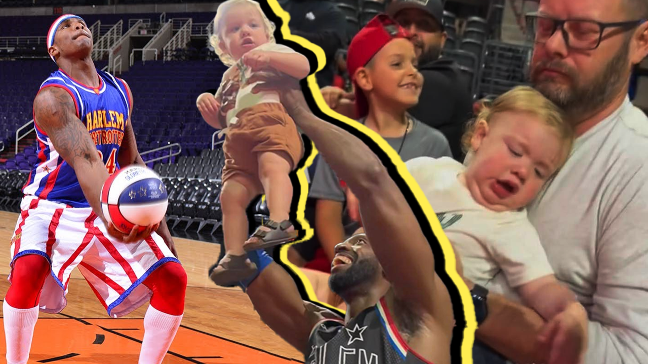 Harlem Globetrotters' crack-up 'Lion King' routine with toddler from crowd goes viral