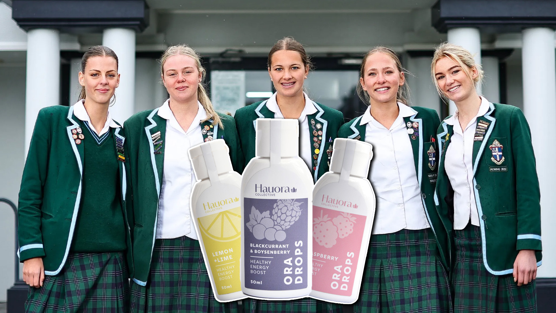 A bunch of Kiwi students have dreamed up an energy-boosting alternative to coffee or energy drinks that claims to have some health benefits, too. Hauora Collective NZ, run by five Timaru high school students, just launched 'Ora Drops' - flavoured drops to add to water as a way to "promote long-term wellbeing".
