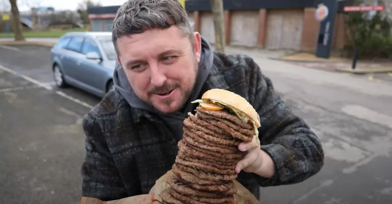 Craig Harker, AKA Dad Loves Food on YouTube, said 'screw traditional birthday celebrations, I'm gonna smash the "UK's biggest whopper" instead', posting his effort to YouTube.