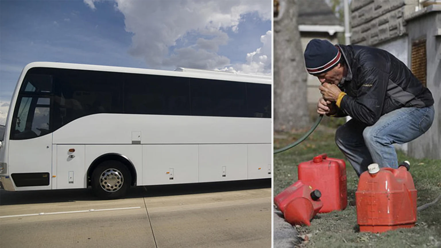 A group of low life thieves trying to siphon fuel have discovered there's more than one holding tank on a tour bus.
