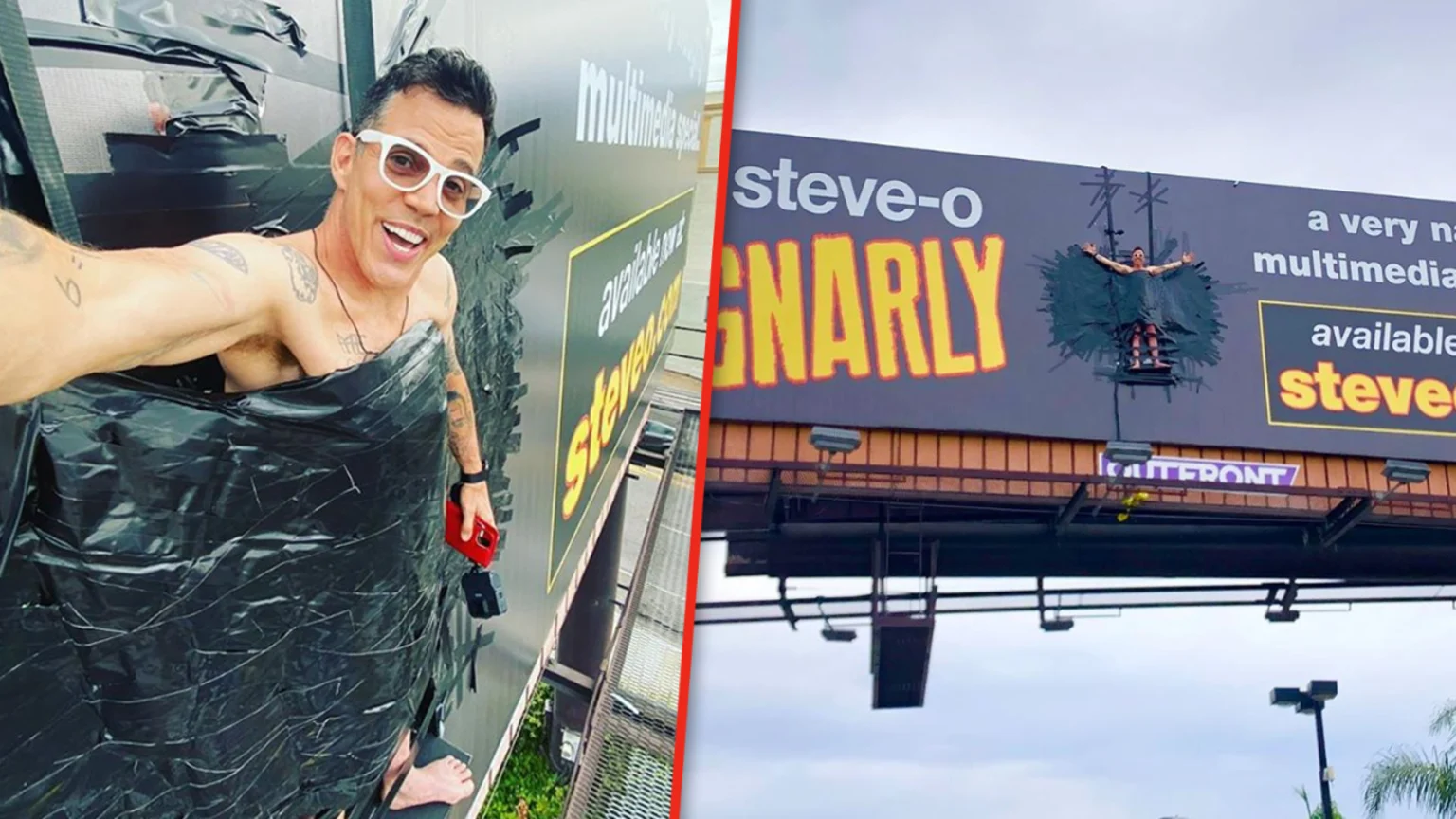 Jackass star Steve-O is currently duct-taped to a billboard in Los Angeles to promote his new comedy special, Gnarly.