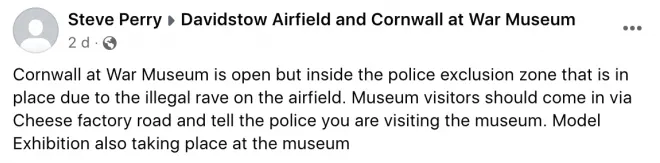 Anyway, back to the model aircraft exhibition. Police had to cordon off the rave to allow model aircraft enthusiasts through to the exhibition, which was taking place on the same airfield. An employee working at the exhibition took to Facebook to alert how his fellow aeroplane aficionados could avoid the party.