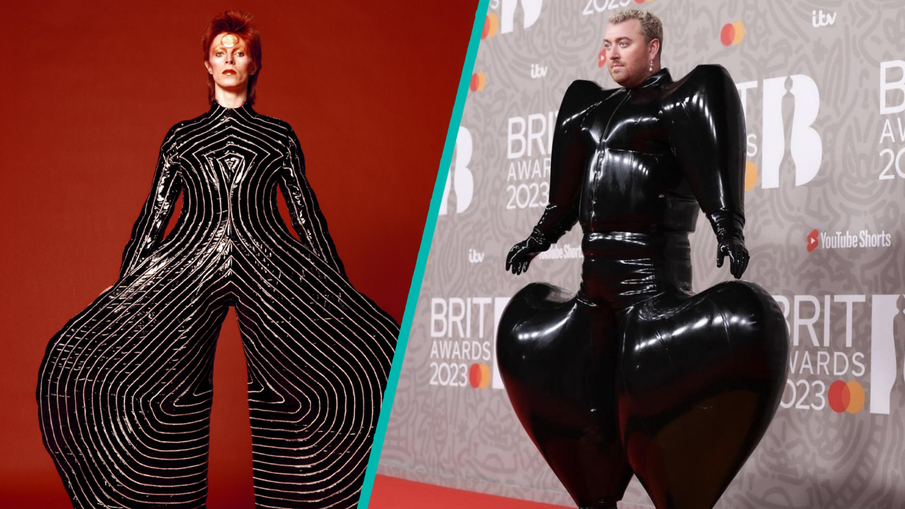 Others pointed out the similarity between Sam's look and one sported by David Bowie in 1978 in a look dubbed his "parachute pants" due to the late singer's balloon-style striped trousers.