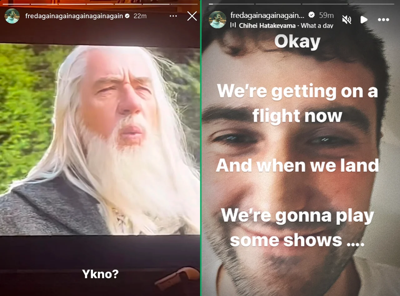 There's all kinds of detective work going on in fan groups. The big thing for Kiwis is him posting an IG story of 'Lord Of The Rings' yesterday, while today he posted stories of him in an airport saying: "When we land, we're gonna play some shows."