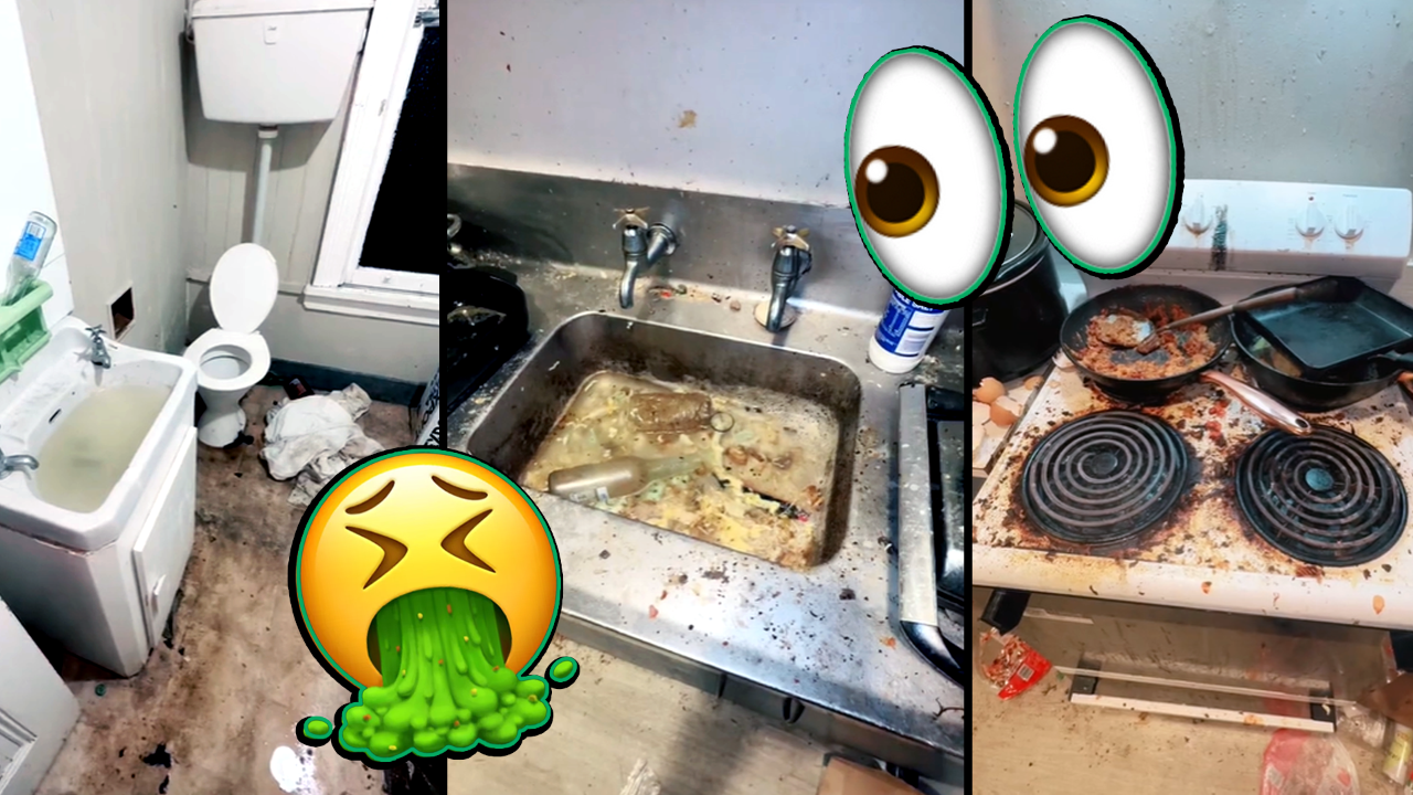 Shockingly, the flatties did give the place a clean. Captioned "after", a follow-up TikTok shows off the flat with a distinct lack of filth yet just as distinct unclean vibe.