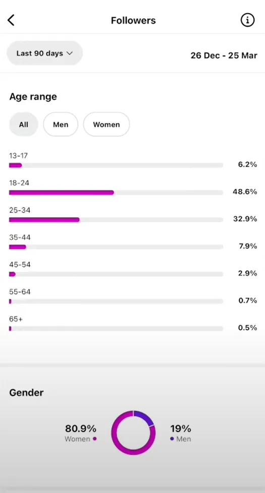 Anna shared her own analytics to prove that 93.8% of her followers are over the age of 18.