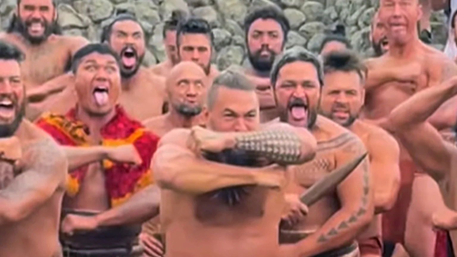 The main cast, including Jason Momoa as well as former and current All Blacks, all launch into the ‘Ka Mate’ haka - made world famous thanks to the NZ rugby side and with permission from North Island iwi, Ngāti Toa.