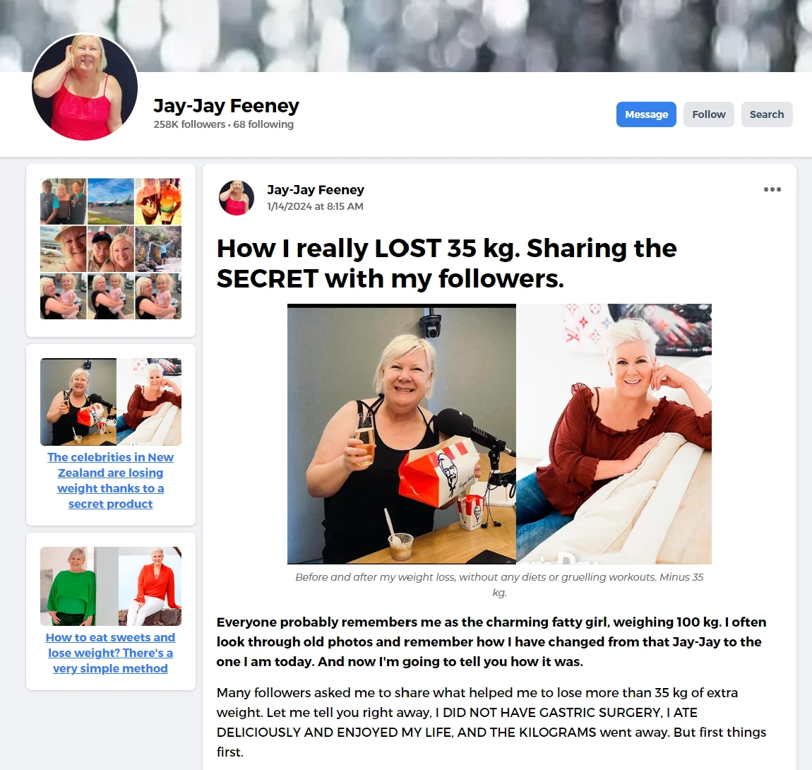Fake Facebook ads and scam diet products are unfortunately not new in this world. But they've found a new target, using our own Jay-Jay Feeney's photos to trick trusting Kiwis.