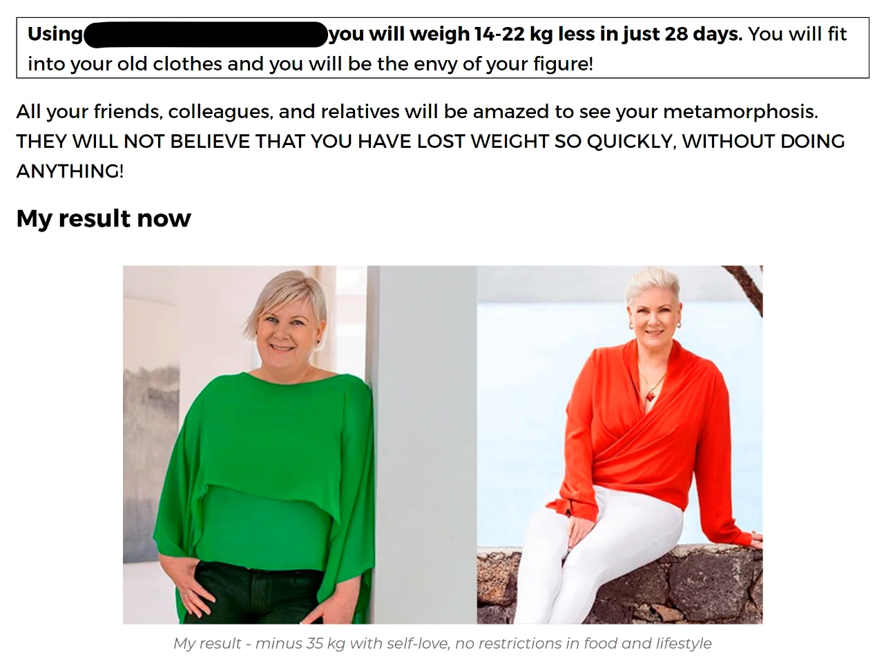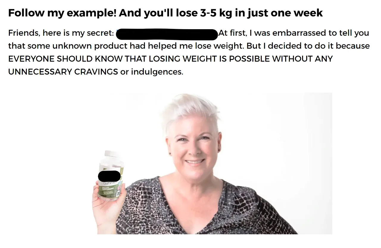 This fake interview then describes how she discovered this fake product, and includes photoshopped images of her from an old More FM photoshoot pretending to hold the product.