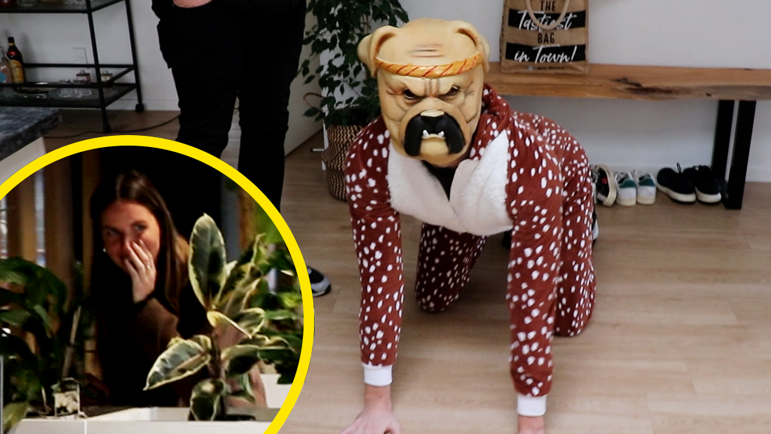 After Gracie admitted that she'd save Charlie over Jayden in a house fire, Jayden, and we'll clarify this - JAYDEN ONLY, came up with the marvelous idea to dress up as a dog and surprise Gracie at her work.
