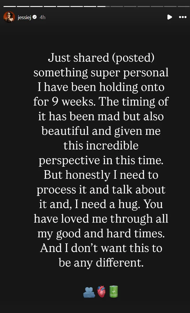 "The timing of it has been mad but also beautiful and given me this incredible perspective in this time," Jessie later explained on her Instagram Story.