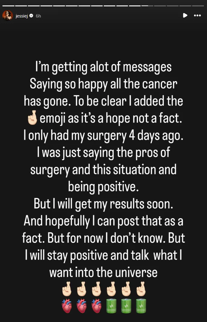 While her surgery was to get rid of the cancer, Jessie remains hopeful that once she gets her results back that she'll be in the clear.