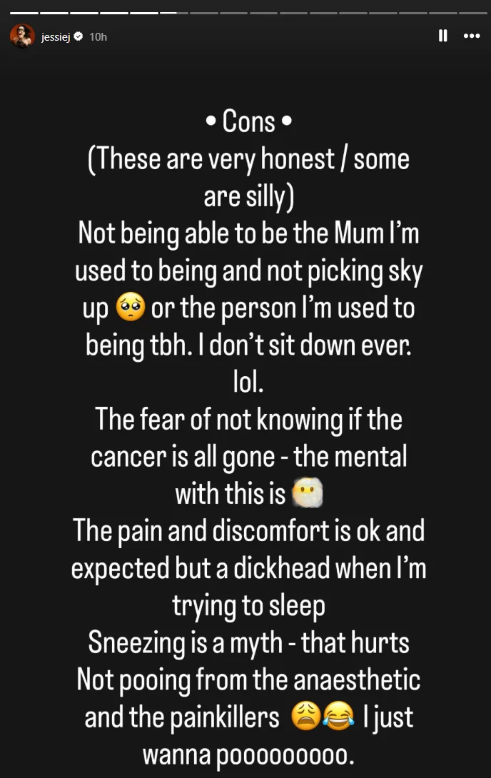 Jessie ended the post by noting that she is experiencing a few issues after the surgery, including painful sneezes and difficulty using the toilet.