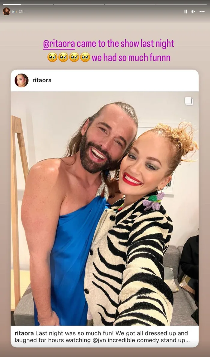 On Saturday night Rita Ora posted her love and support for JVN's comedy show sharing an adorable Selfie of the two.