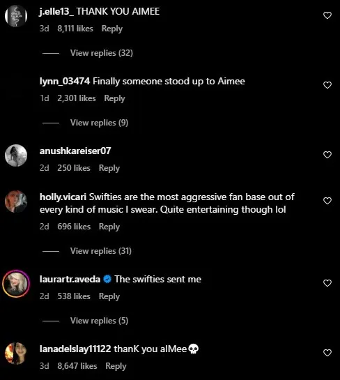 Others simply wrote the song title, "thanK you aIMee" in her comments section.