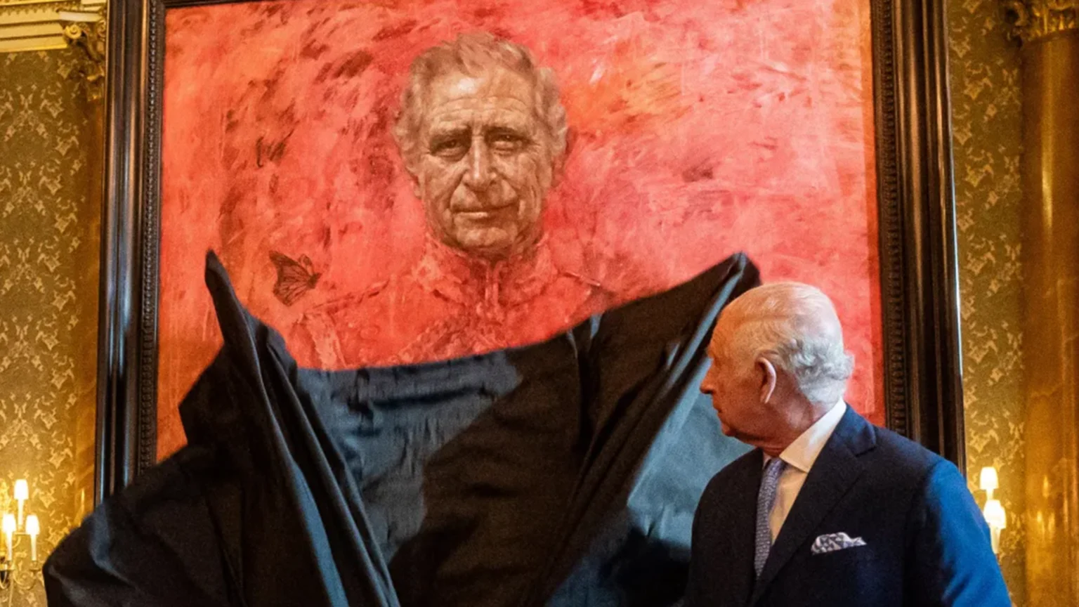 A small monarch butterfly can be seen hovering above his right shoulder, believed to symbolise Charles' reign and his dedication to environmental causes.