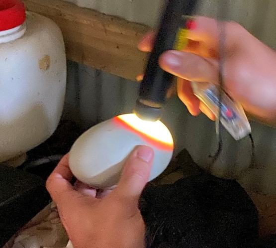 The male was away at the time, and sadly, the egg was cold and no longer viable. Candling showed it had developed to around 55 days - almost full term - but there were no blood vessels feeding it.
