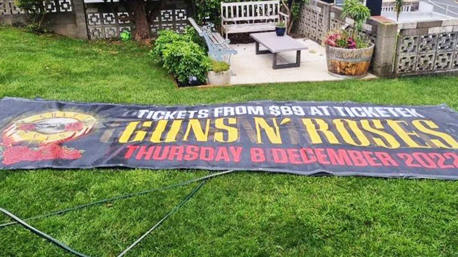 Who doesn't love a wacky, unique TradeMe listing,? We sure do - and this listing of a tour banner from Guns N' Roses' recent New Zealand tour certainly fits the bill.