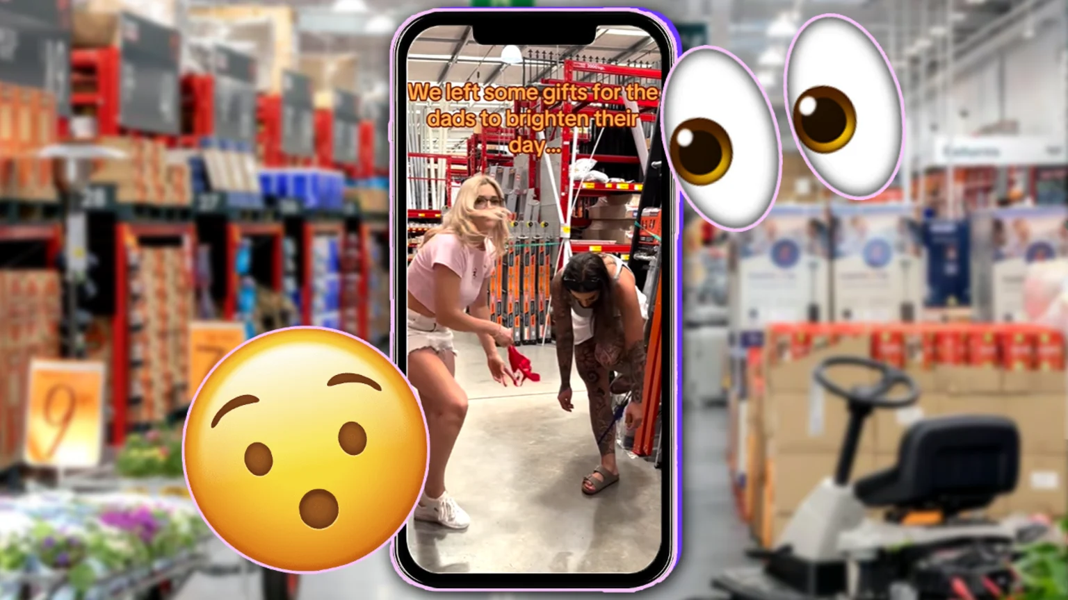 Layla Kelly and her partner-in-crime decided to spice things up a bit by filming themselves taking their undies off and leaving them as "custom-made gifts for the dads and hardworking tradies" around the store.